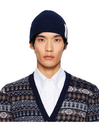 Navy Cashmere 4-Bar Cuff Beanie