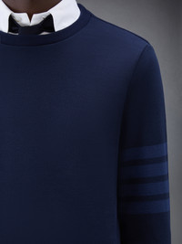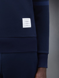 Navy Cotton Loopback Relaxed Fit Tonal 4-Bar Crewneck Sweatshirt