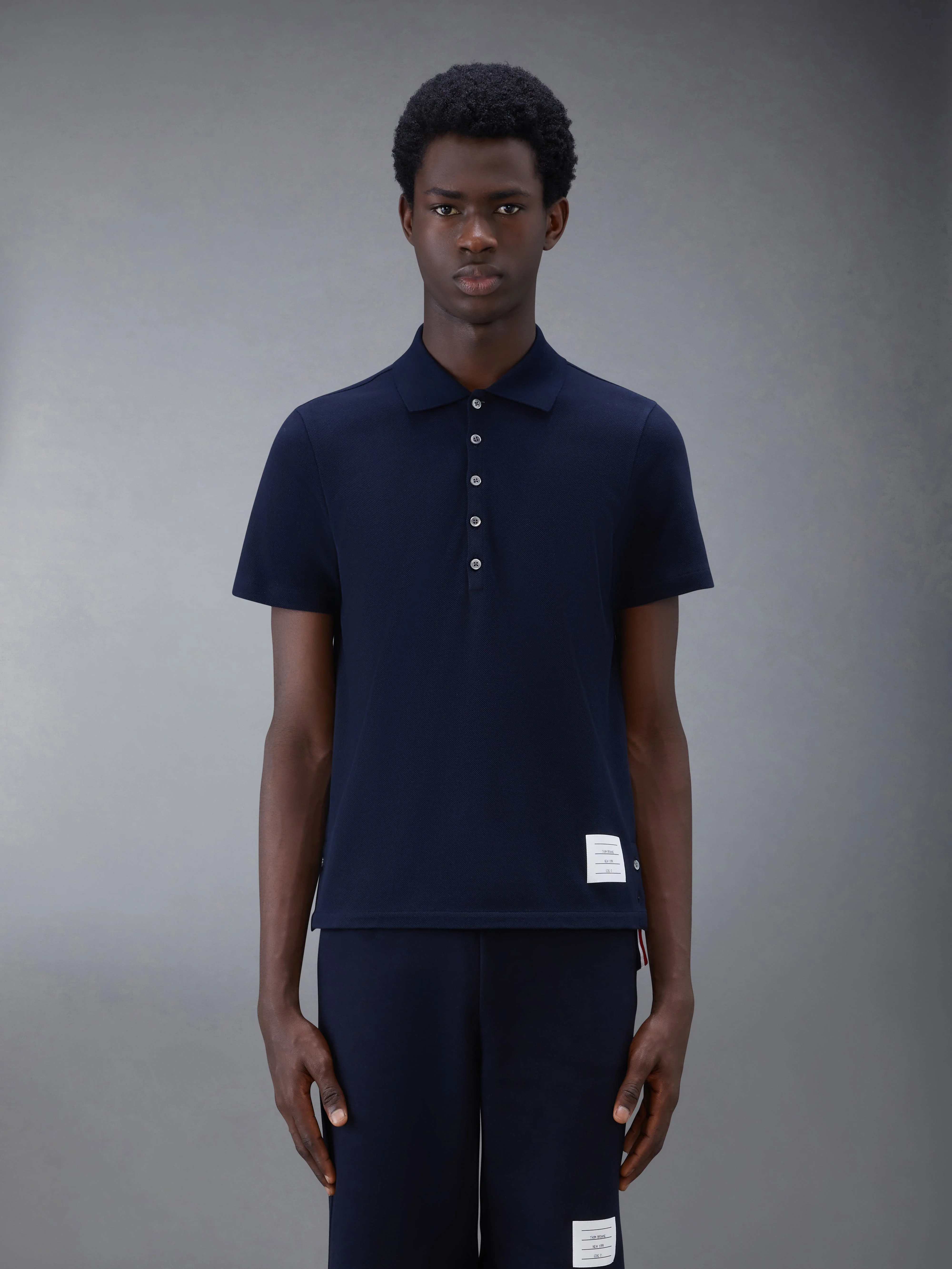 Navy Cotton Pique Center Back Stripe Relaxed Fit Polo