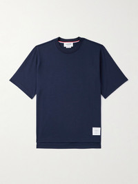 The signature tricolor stripes tracing the back of this T-shirt are a clear nod to Thom Browne's DNA. It's been made in Japan from soft cotton-jersey and has a logo patch and the step hem. Size & Fit - Size 0 = XS, 1 = S, 2 = M, 3 = L, 4 = XL, 5 = XXL and 6 = XXXL - Fits true to size. Take your normal size - Designed for a relaxed cut - Mid-weight, slightly stretchy fabric - Model is shown wearing a 2 - Model measures: chest 38"/ 96cm, height 6'0"/ 183cm Details & Care - Navy cotton-jersey - 100% cotton - Machine wash