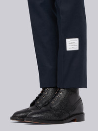 DETAILS & FIT Our Cotton Twill Unconstructed Chino Trouser. The classic shortened hem pays homage to Thom Browne’s distinguished tailoring. Tab closure Creased legs Clean cuffs Name tag applique above left cuff Beltloops Slip side pockets Button fastening back welt pockets Signature striped grosgrain loop tab at back waist Model is 6' 1" (185cm), wearing size 0 100% Cotton Made in Japan MTU187A-03788-415