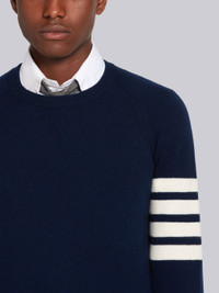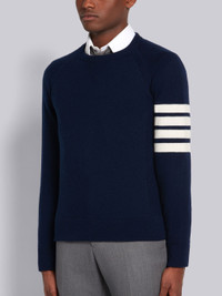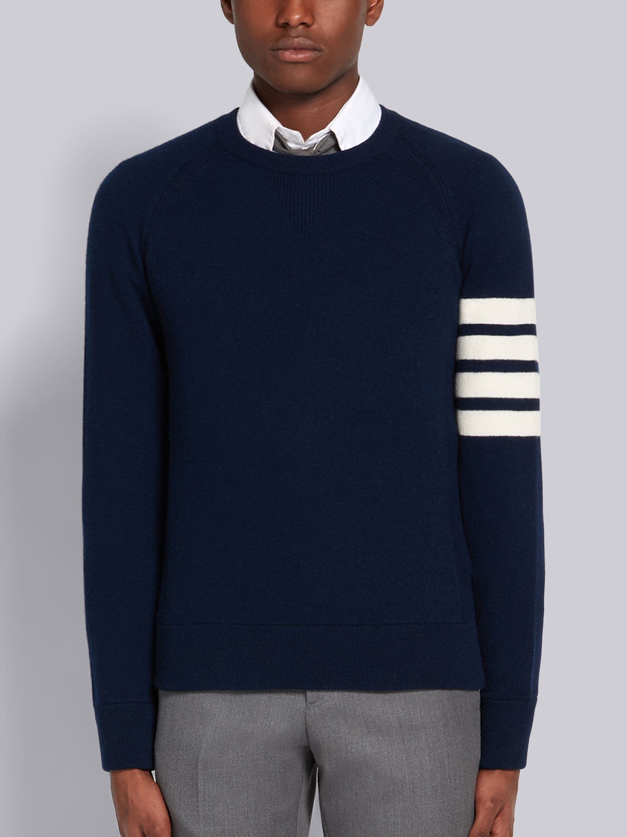 Navy French Terry Cashmere 4-Bar Crewneck Pullover