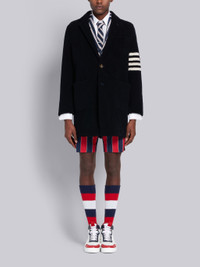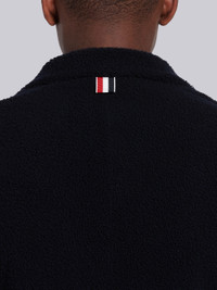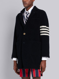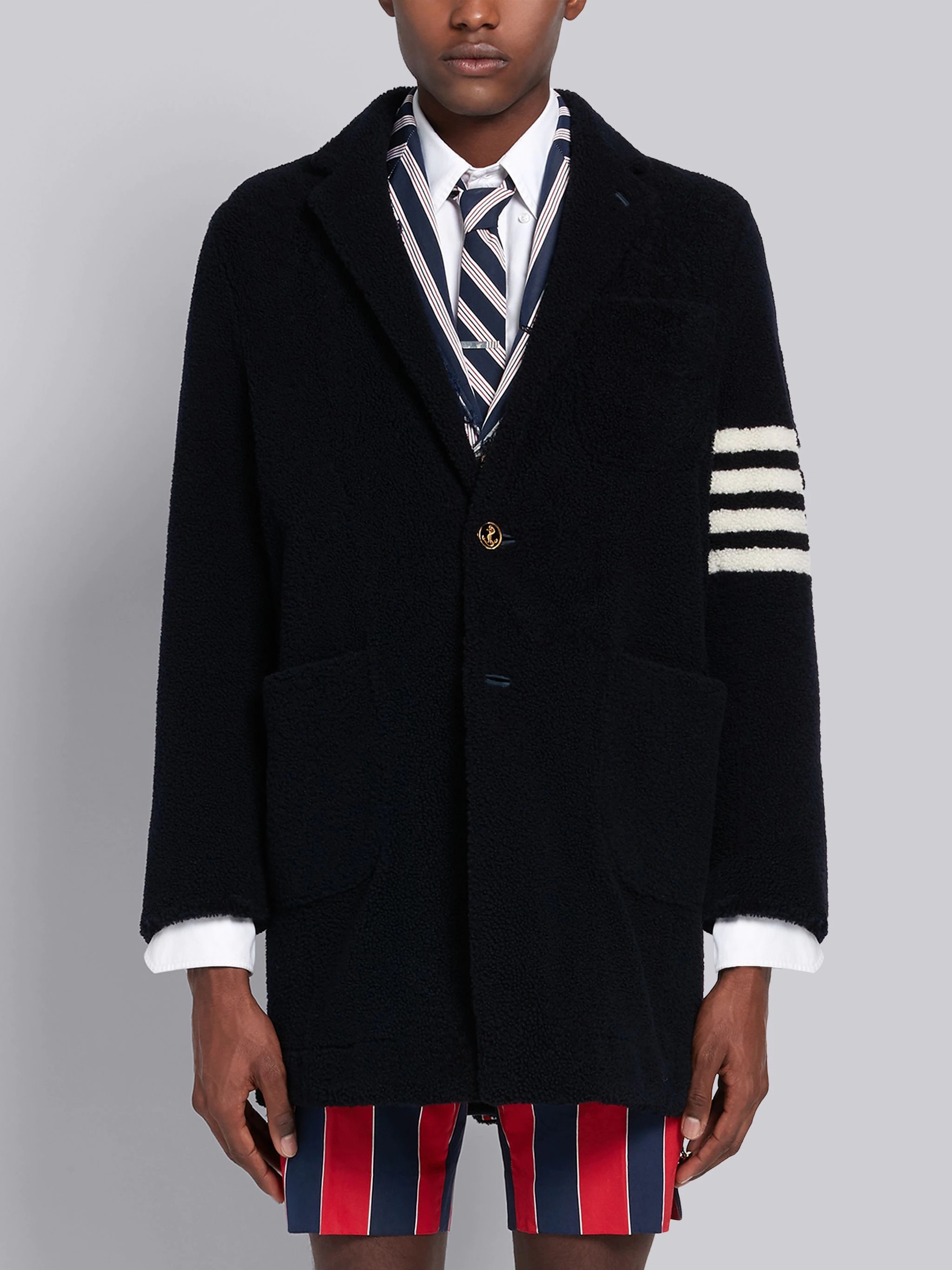 Navy Lightweight Shearling Unconstructed Sack 4-Bar Overcoat