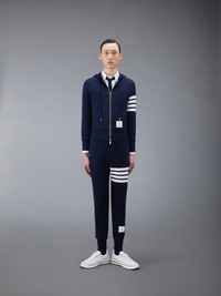 DETAILS & FIT Leisurewear made artful. Our Classic Loopback 4-Bar Full Zip Hoodie is adorned with our iconic 4-Bar detailing emulated after varsity stripes. Brass 2-way zip closure Integrated hood with stripe trim 4-bar stripe detail at left sleeve Kangaroo front pocket with name tag applique Model is 6' 1" (185cm), wearing size 0 100% Cotton Made in Japan MJT022H-00535-461 - CHEST: 97.0cm - SLEEVE LENGTH: 88.0cm - Shoulder Width: 108.0cm