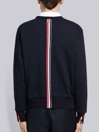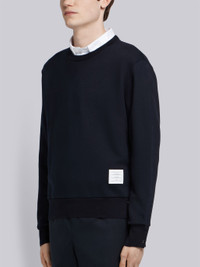 Navy Loopback Knit Center Back Stripe Crew Neck Pullover