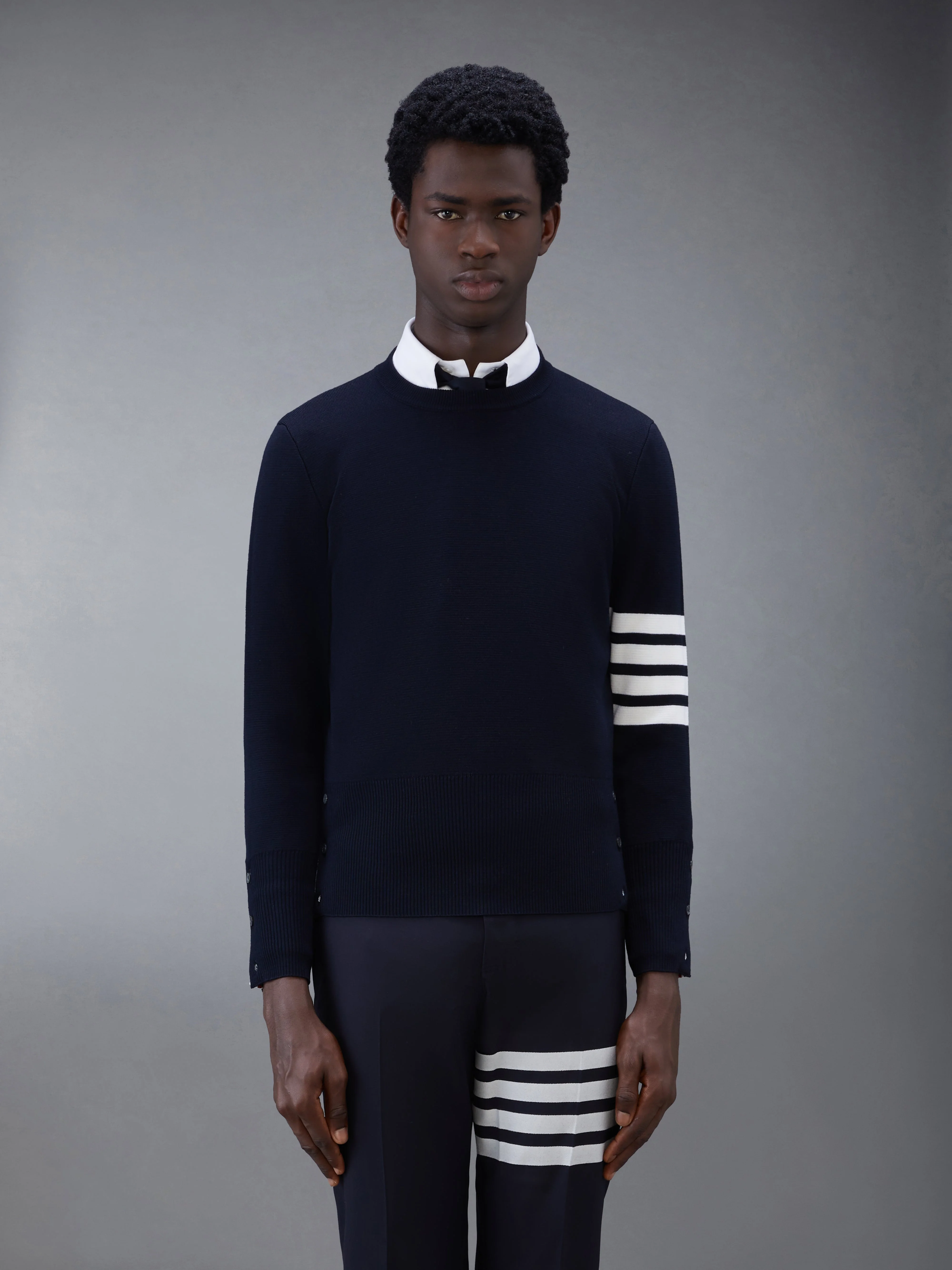 Navy Milano Stitch Fine Merino Wool 4-Bar Crew Neck Pullover