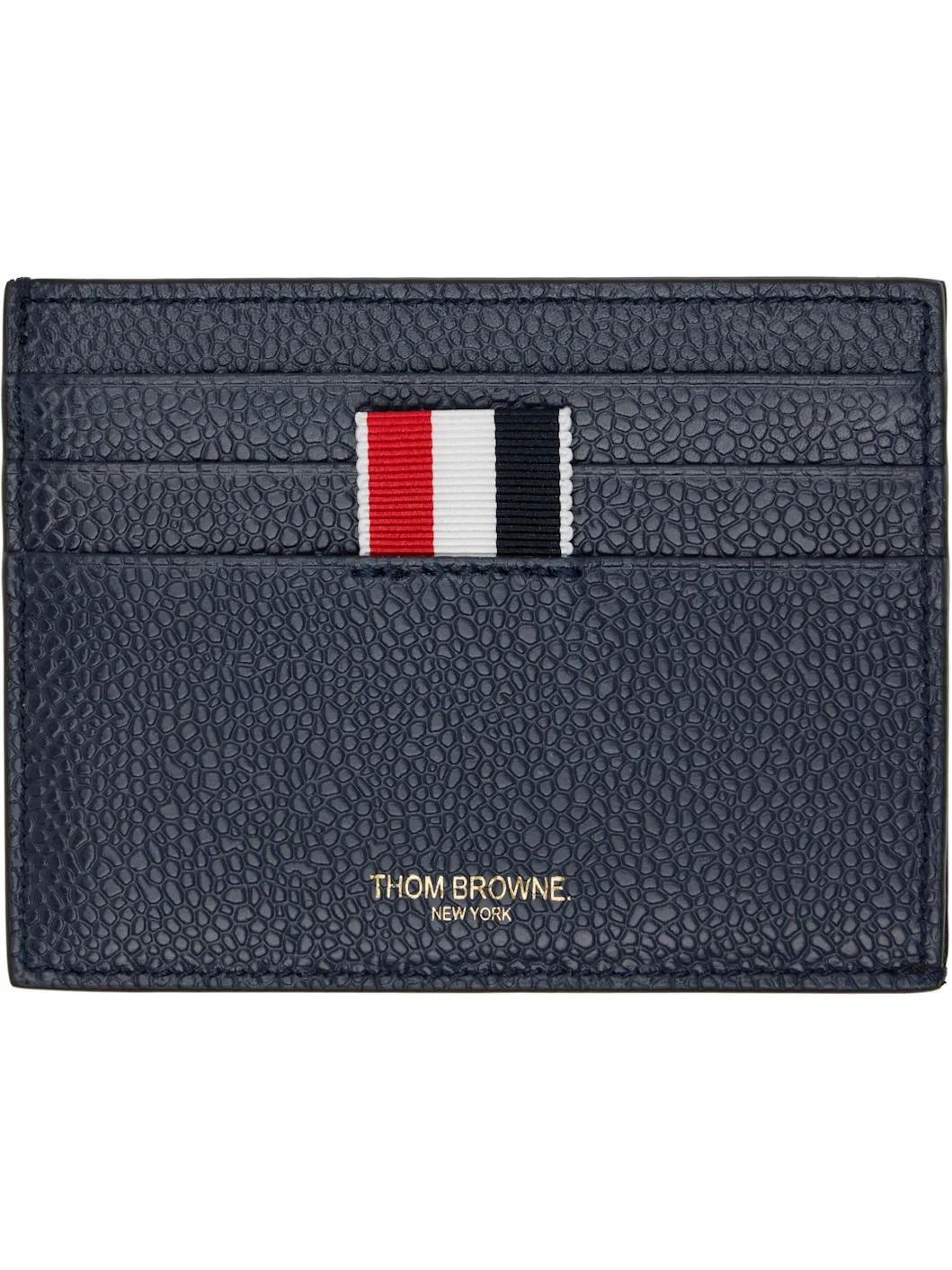 Pebble-grained calfskin card holder. · Tricolor grosgrain flag and logo stamp at face · Six card slots · Central note slot · H3" x W4" Supplier color: Navy Calfskin. Made in Italy 261381M163001