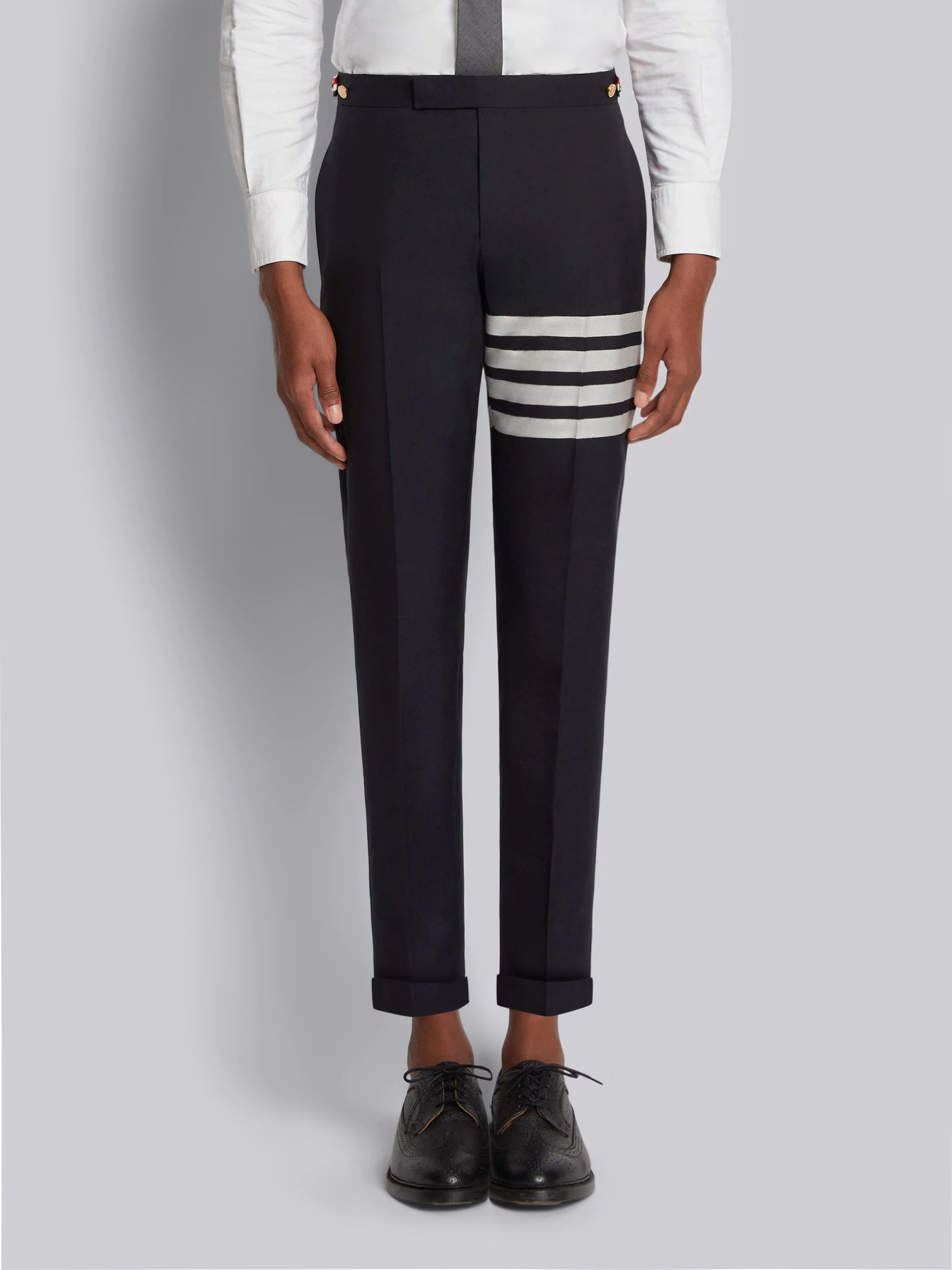 Navy Plain Weave Suiting 4-Bar Low Rise Side Tab Trouser