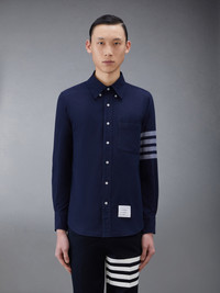 DETAILS & FIT A Thom Browne winter essential, our Flannel 4-Bar Shirt exhibits quality craftsmanship and meticulous tailoring. Pair with a casual pant during cooler months. Front button closure Button down point collar patch chest pocket 4-bar stripe detail at left sleeve Pleated Buttoned cuffs Name tag applique above hem Pleated back yoke with locker loop Signature striped grosgrain loop tab at back of neck Model is 6' 1" (185cm), wearing size 1 100% Cotton Made in Italy MWL272A-05245-415 - CHEST: 101.0cm - SLEEVE LENGTH: 62.0cm - WAIST: 99.0cm