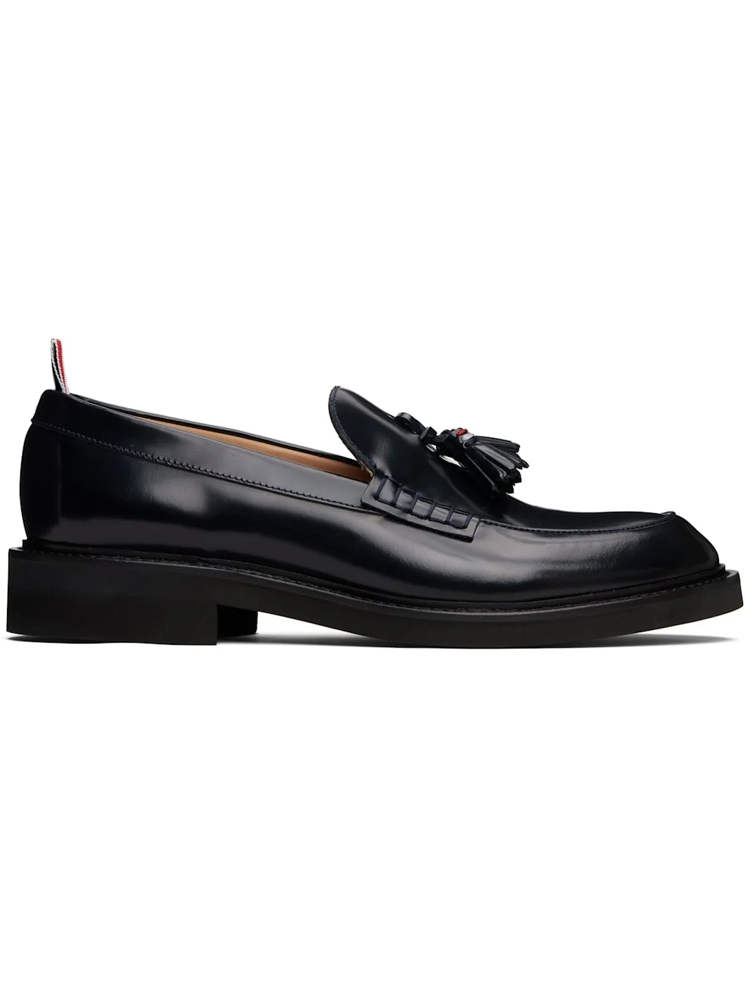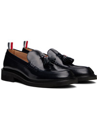 Polished calfskin loafers in navy. · Moc toe · Tassels at vamp · Tricolor grosgrain pull-loop at heel collar · Buffed leather lining · Topstitching at welt · Foam rubber heel and sole Supplier color: Navy Upper: calfskin. Sole: rubber. Made in Italy 252381M231002