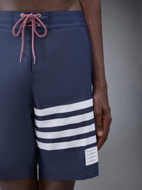 DETAILS & FIT Swimwear made artful. Our Swim Tech 4-Bar Board Shortsis equipped with sleek cut-outs and our iconic stripe grosgrain loop tab. Drawstring waistband Back flap pocket 4-bar stripe detail at left thigh Name tag applique above hem Signature striped grosgrain trim at sides Signature striped grosgrain loop tab at back waist Model is 6' 1" (185 cm), wearing size 0 94% Polyamide, 6% Polyurethane Lining: 100% Polyester Made in Italy MTT029A-07538-415