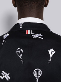 DETAILS & FIT Unconstructed classic jacket in navy with half drop sky icon embroidery throughout. 2-button front closure, notched lapels, 2 flap front pockets, single chest pocket. Buttoned cuffs with signature striped grosgrain trim. Interior name tag. Striped lining with interior pocket and name tag. Signature striped grosgrain loop tab at back of neck. Classic - Fit 1. Model is 6' 1" (185mm), wearing size 0. 60% Cotton, 40% Viscose Made in Japan MJU426A10260415