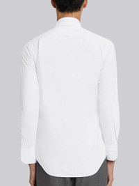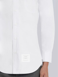 DETAILS & FIT Classic fit shirt in off white solid poplin with striped grosgrain placket. Front button closure, button-down closure, patch chest pocket. Name tag applique above shirttail hem. Buttoned cuffs. Pleated back yoke with locker loop. Signature striped grosgrain loop tab at back of neck. Model is 6'1" (186 cm), wearing size 1 100% Cotton Made in the USA MWL010E00906114