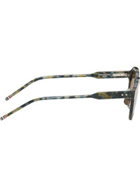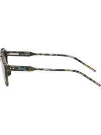 Oval semi-transparent tortoiseshell acetate-frame sunglasses. · Anti-reflective brown lenses · Adjustable metal nose pads · Enameled tricolor stripes at temple tips · Includes case · Size: 49.21 148 Supplier color: Navy melange Acetate. Made in Japan 252381M134079