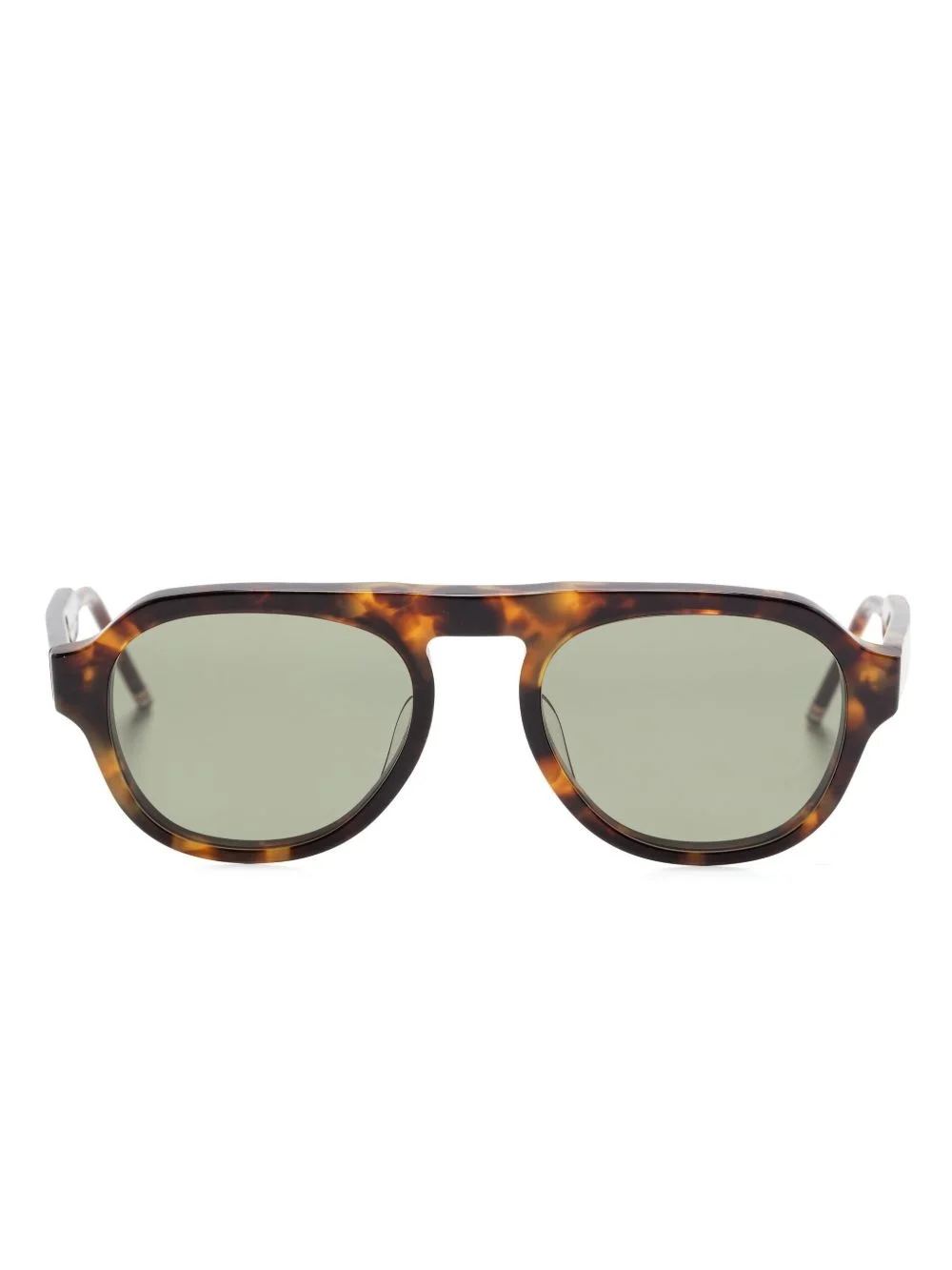 oval-frame sunglasses Highlights - Havana brown - Tortoiseshell effect - Oval frame - Green tinted lenses - Sculpted arms - Curved tips - These glasses come with a protective case. Imported Composition Acetate 100% SIZE & FIT Measurement Arm Length 5.78 in(14.7 cm) Bridge Width 0.78 in(2 cm) Lens Diameter 2.04 in(5.2 cm) Total Width 5.59 in(14.2 cm)