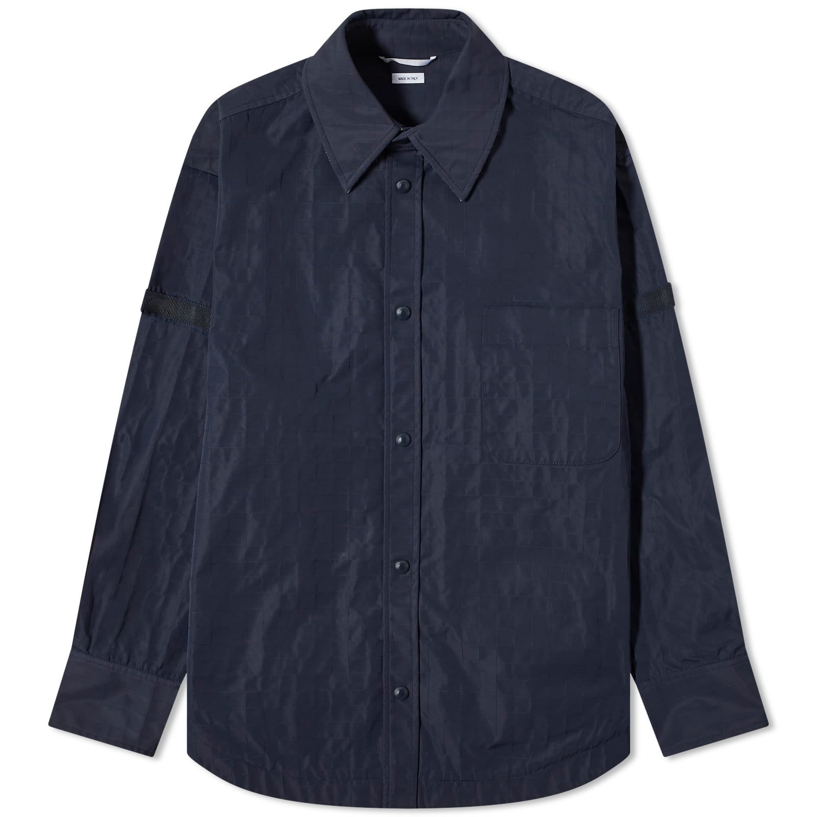 Thom Browne transforms traditional tailoring and American sportswear with inventive, exaggerated proportions. Crafted from hard-wearing ripstop fabric, this shirt jacket is designed with generous room for a contemporary technical appearance, diverging from conventional tailored pieces. A curved hem and the trademark grosgrain loop at the back complete the look. - 90% Polyamide, 10% Polyurethane - Chest Patch Pocket - Button Closure - Oversized Fit - Curved Hem - Grosgrain Loop Back Detail