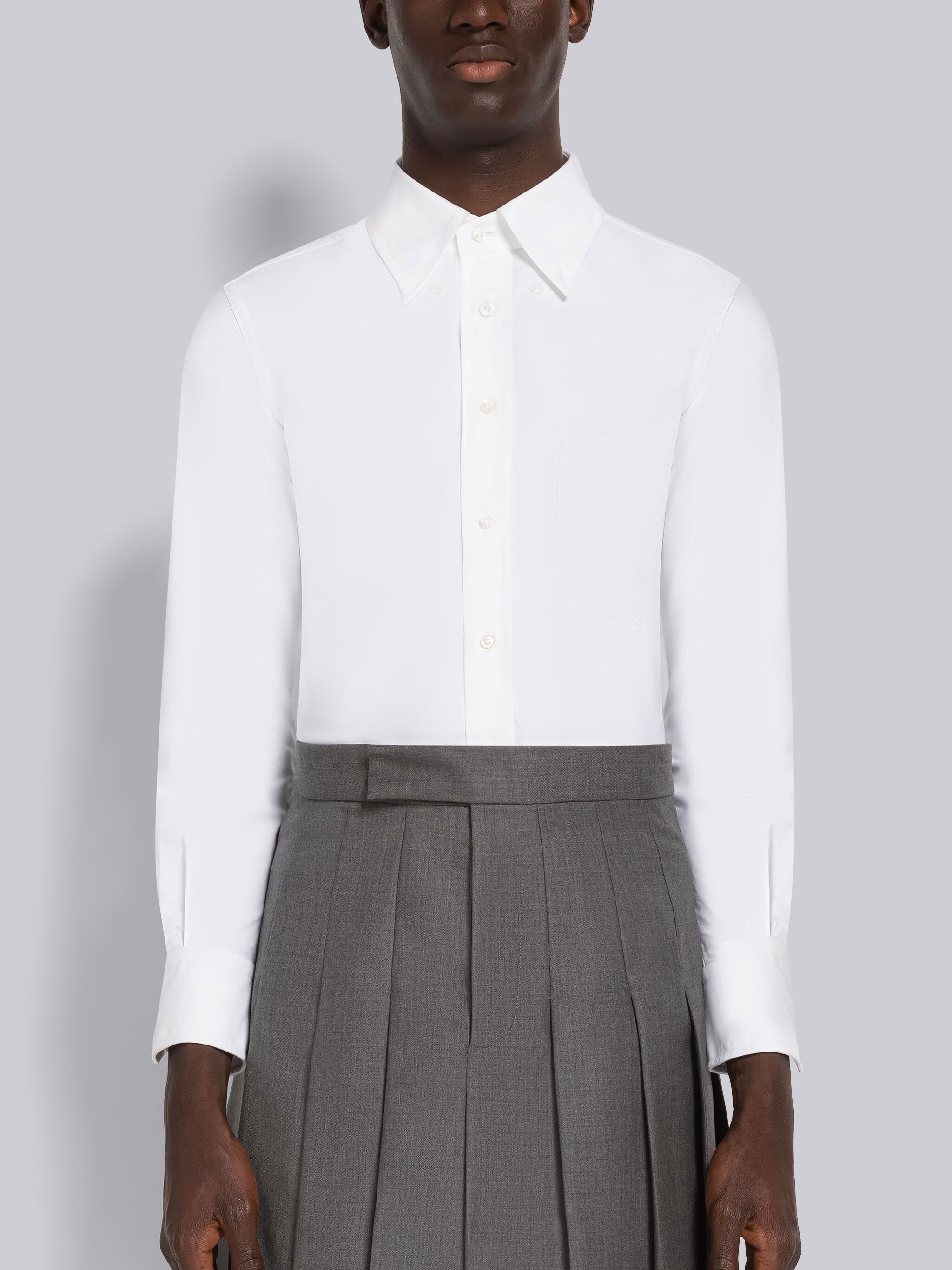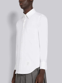DETAILS & FIT Classic shirt in white cotton Oxford. Front button closure, point collar, patch chest pocket. Long sleeves with barrel cuffs. Name tag appliqué above shirttail hem. Center back hanger loop. Model is 6' 1" (185mm), wearing size 0. 100% Cotton Made in the USA MWL001A06177100