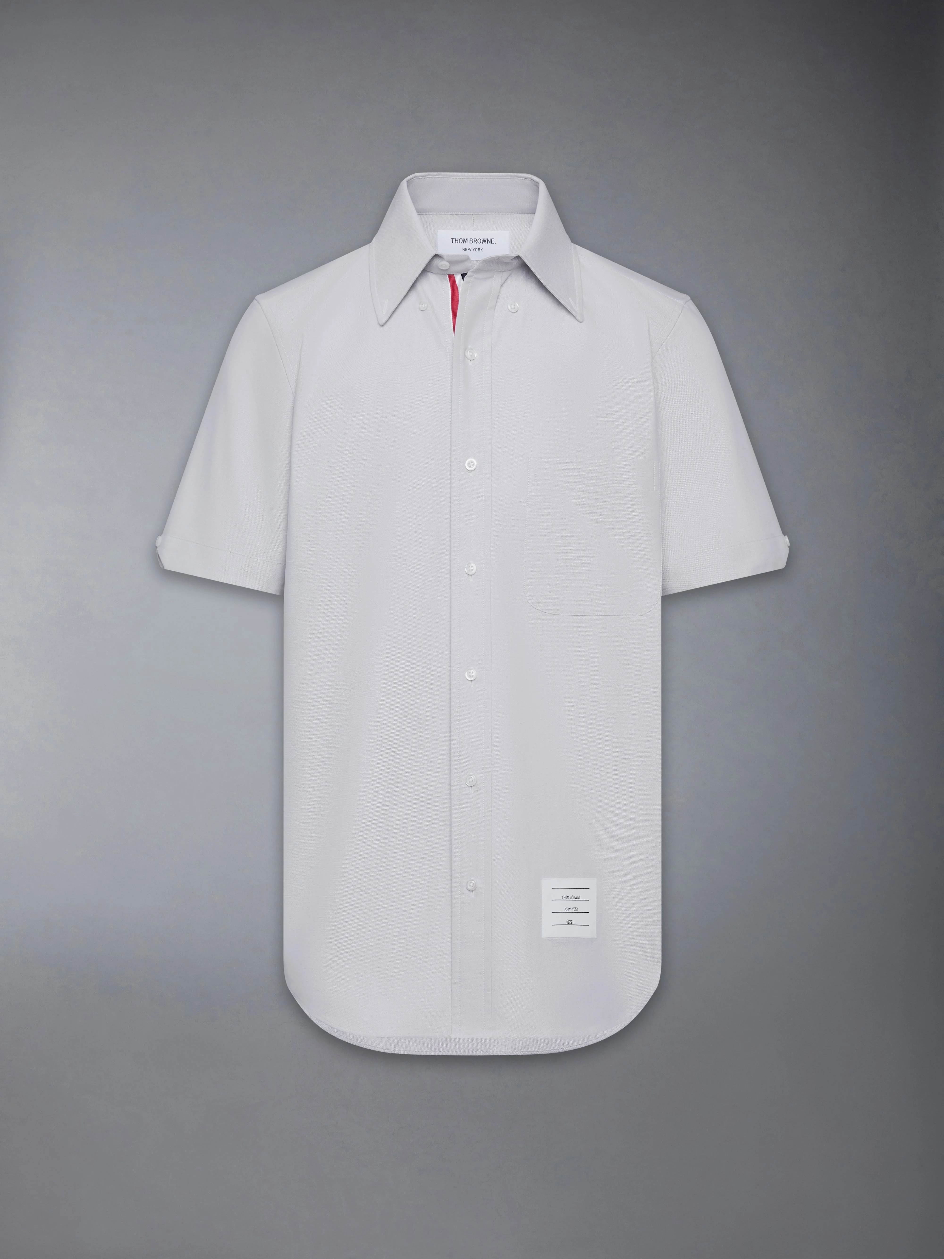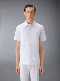 A Thom Browne essential, our Oxford Short Sleeve Shirt exhibits quality craftsmanship and meticulous tailoring. Straight fit Front button closure with striped grosgrain placket Name tag applique above hem Seamed back yoke with locker loop Signature striped grosgrain loop tab at back of neck Model is 6' 1" (185cm), wearing size 1 100% Cotton Made in Italy MWS239E-F0313-035