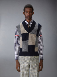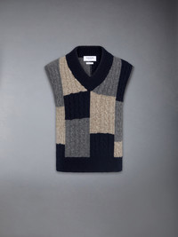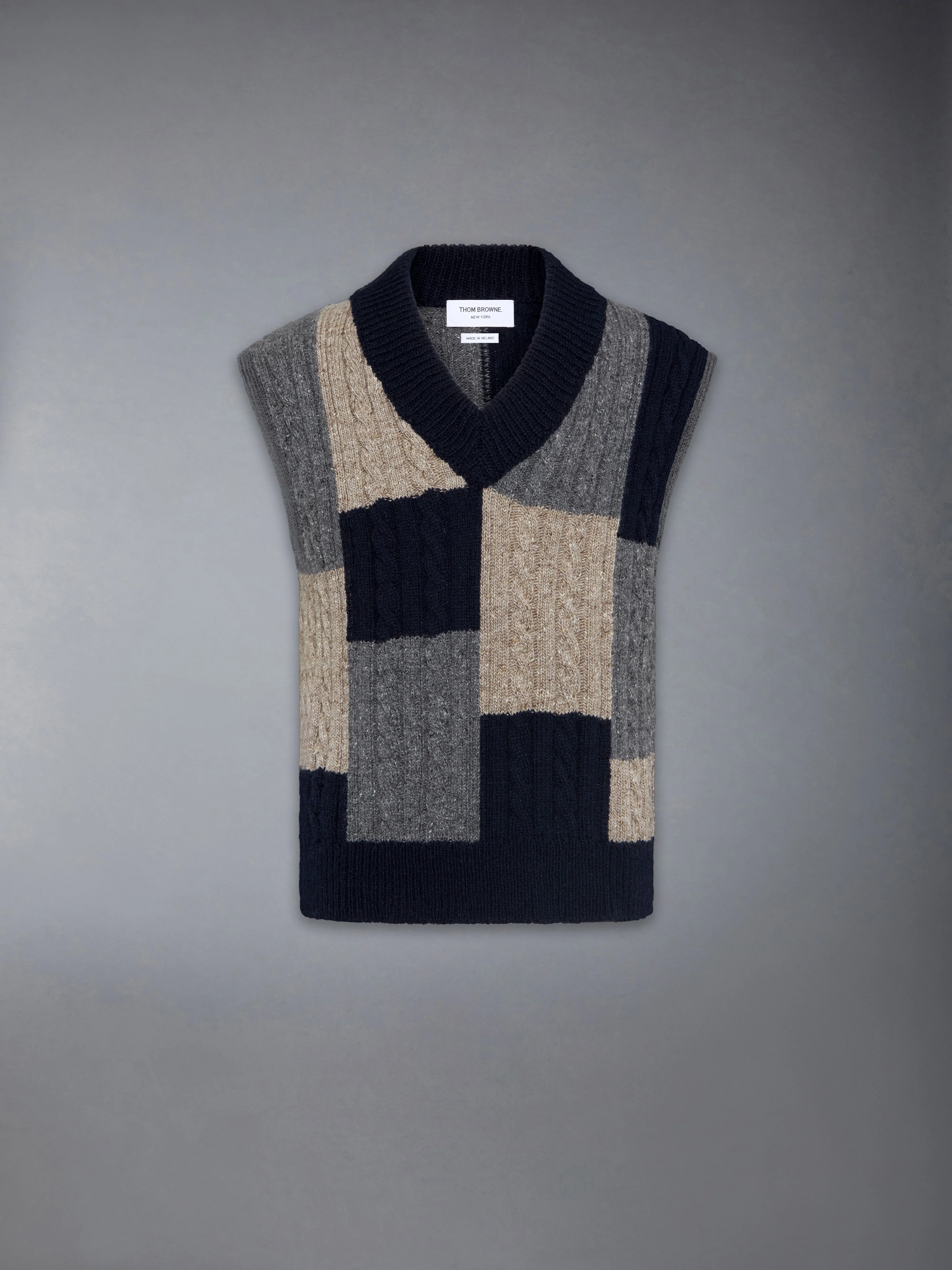 DONEGAL PATCHWORK INTARSIA V NECK VEST