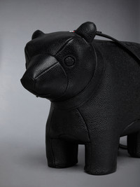 Introducing our Bear Bag, the newest addition to Thom Browne's renowned collection of animal bags. Meticulously crafted from premium pebble grain leather, this unique piece tells the story of bears emerging from hibernation, symbolizing renewal and strength. Pebble grain shoulder strap Brass zip top closure Tricolor stripe lining Signature striped grosgrain loop tab 100% Calf Full Grain Leather Lining: 100% Polyester Made in Italy UAG224A-00198-001