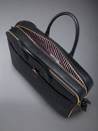DETAILS & FIT The pinnacle of sophisticated workwear — this business bag is a dynamic office essential designed to effortlessly transition from the office to after-hours pursuits. Double brass zip closure Exterior vent pocket Signature striped lining Interior brass zip compartment Signature striped grosgrain loop tab Crossbody strap 100% Calf Full Grain Leather Lining: 100% Polyester MAG443A-00198-001 - DEPTH: 9.0cm - HANDLE: 12.0cm - HEIGHT: 30.0cm - STRAP: 49.0cm - WIDTH: 41.0cm