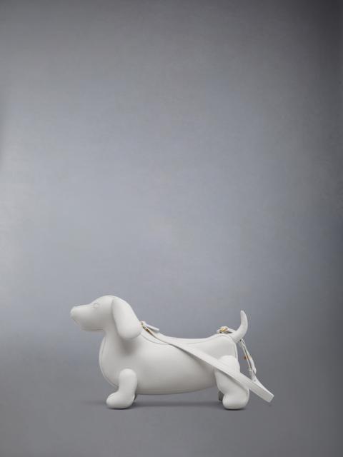 Our Pebble Grain Hector Baguette Bag. Heralded as the most famous dog muse in fashion, Thom Browne’s very own dachshund Hector served as the inspiration behind this quintessential piece. Brass zip top closure Adjustable leather shoulder strap Striped lining Measurements: Length 32 x Height 21 x Width 13 cm 100% Calf Full Grain Leather Lining: 100% Polyester Made in Italy FAP341A-00198-415