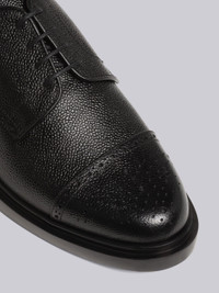 DETAILS & FIT Cap toe derby shoe in black pebble grain leather. Tonal lace up closure, perforated broguing details, lightweight tonal rubber sole. Signature striped grosgrain loop tabs at heels. Upper:100% Calf Leather Sole:100% Rubber Lining: 100% Calf Leather Made in Italy MFD257A06257001
