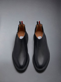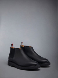 DETAILS & FIT Mid top Chelsea boot in black pebble grain leather with tonal crepe sole. Tonal elasticated gore. Leather insole and lining. Signature striped grosgrain loop tabs at heels. Upper:100% Calf Leather Sole:100% Rubber Lining:100% Calf Leather Made in the United Kingdom MFB224B06257001 - CIRCUMFERENCE: 27.0cm - HEEL: 3.0cm - HEIGHT: 11.0cm - Sole height: 2.0cm