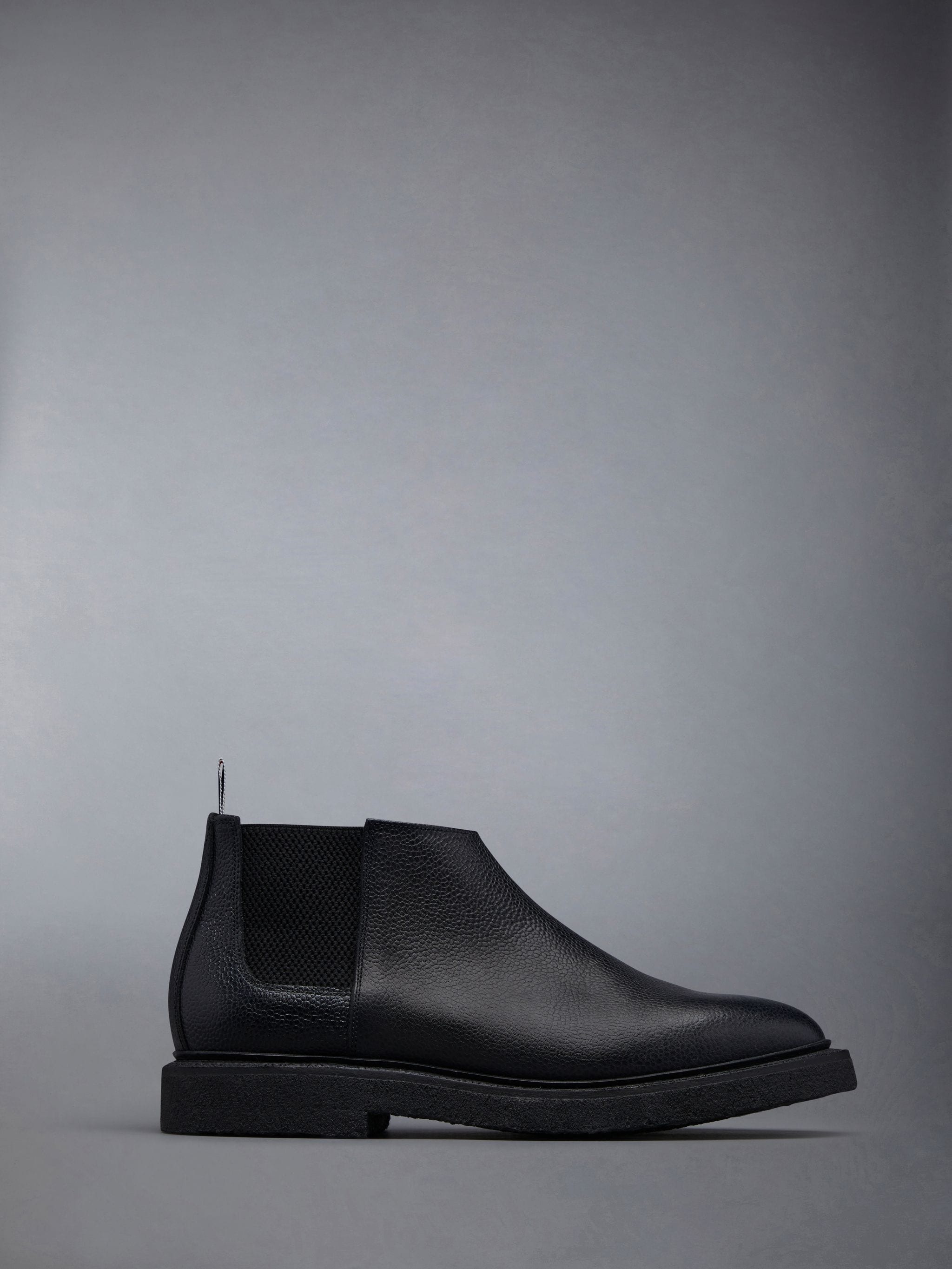 Pebble Grain Leather Crepe Sole Mid Top Chelsea Boot
