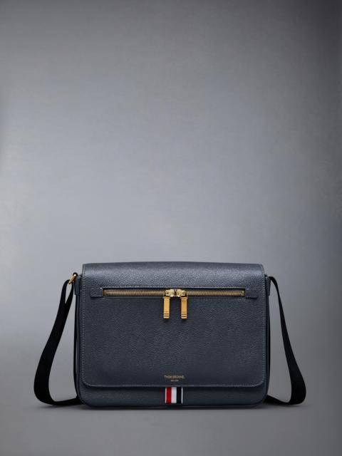 DETAILS & FIT Reporter bag in grey pebble grain leather with black webbing strap. Flap top, 2-way zip pocket at front. Gold foil printed logo and signature striped grosgrain loop tab at entry. 100% Calf Full Grain Leather Lining: 100% Polyester Made in Italy MAG143B-00198-025 - DEPTH: 6.0cm - HEIGHT: 20.0cm - STRAP: 55.0cm - WIDTH: 27.0cm