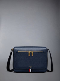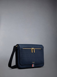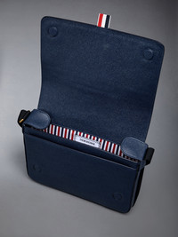 DETAILS & FIT Reporter bag in blue pebble grain leather with black webbing strap. Flap top, 2-way zip pocket at front. Gold foil printed logo and signature striped grosgrain loop tab at entry. 100% Calf Full Grain Leather Lining: 100% Polyester Made in Italy MAG143B-00198-415 - DEPTH: 6.0cm - HEIGHT: 20.0cm - STRAP: 59.0cm - WIDTH: 27.0cm
