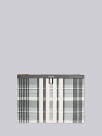 DETAILS & FIT Medium document holder in Madras check print pebble grain leather with 4-bar stripe applique through face in white. Brass zip top closure, gold foil printed logo at entry. Signature striped grosgrain loop tab at entry. 100% Calf Full Grain Leather Made in Italy MAC155AL0041980 - WIDTH: 35.0cm - HEIGHT: 26.0cm