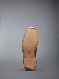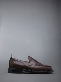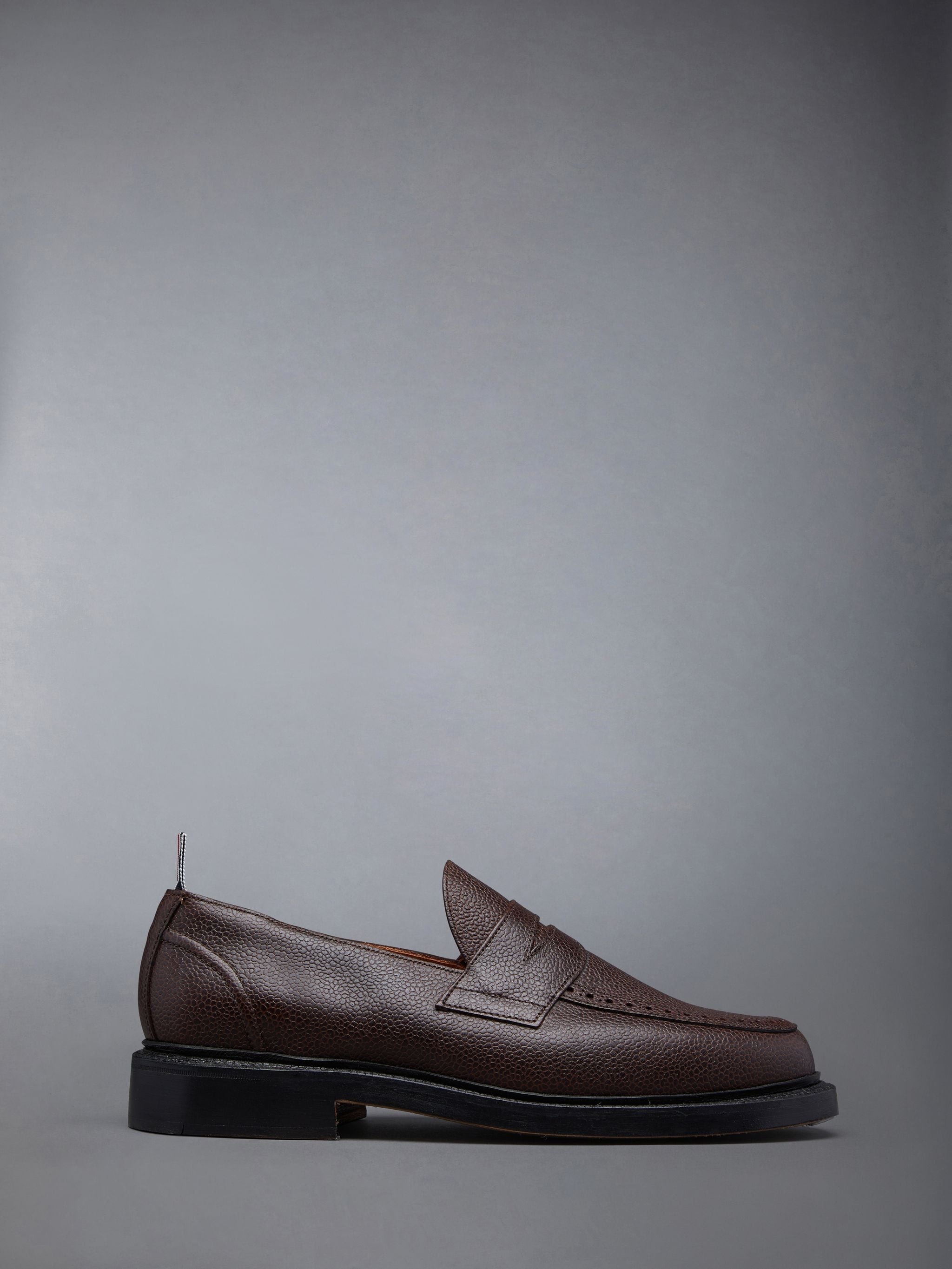 DETAILS & FIT Our Pebble Grain Penny Loafer is a traditional silhouette crafted with the highest quality of classic shoemaking. Leather sole Leather lining Signature striped grosgrain loop tabs at heels Upper: 100% Calf Leather Sole: 100% Calf Leather Lining: 100% Calf Leather Made in the UK MFL085A-06257-210
