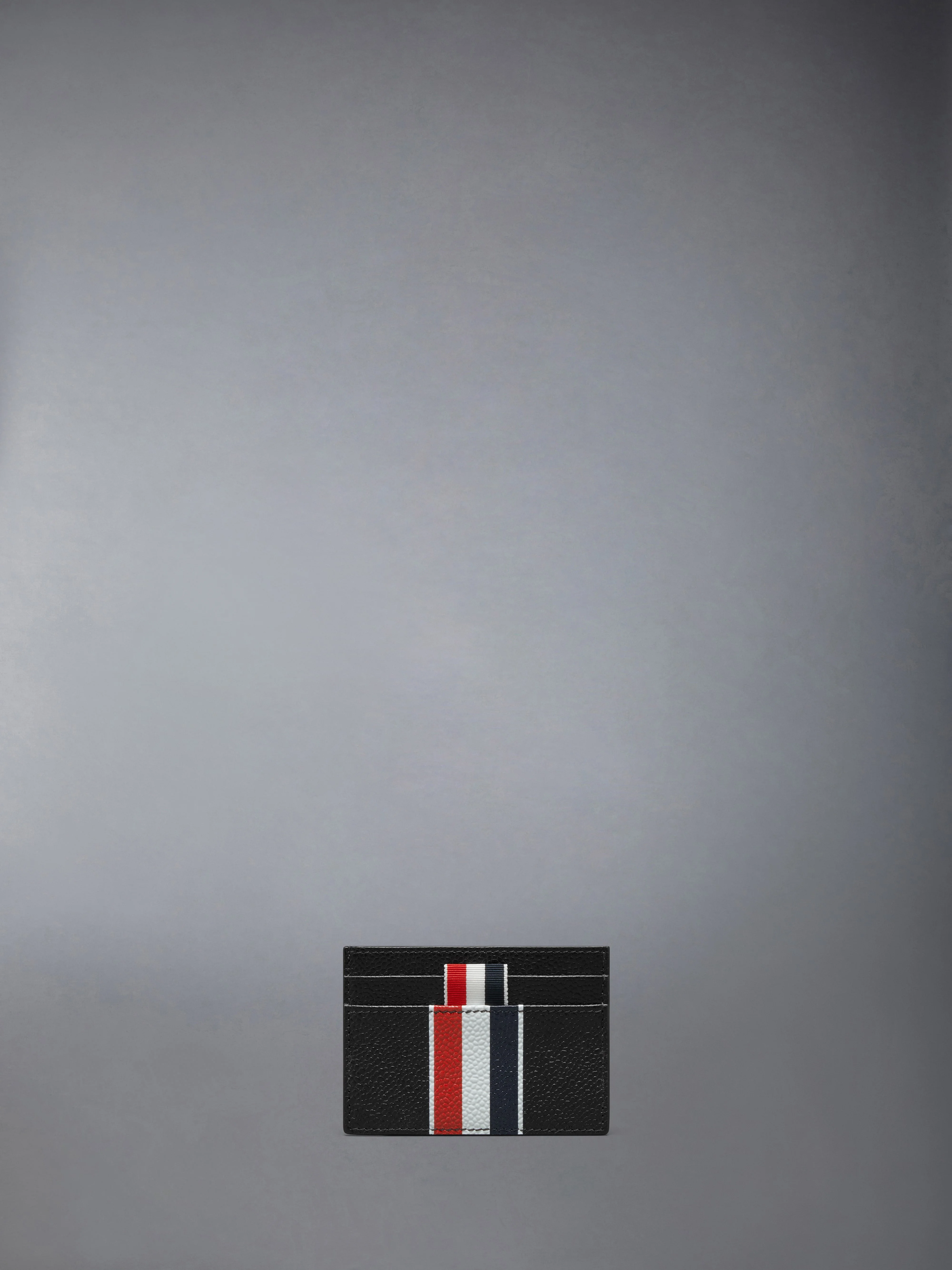 Crafted in durable pebble grain leather, this double-sided card holder features a bold, dimensional printed RWB stripe and a grosgrain tab—distilling Thom Browne’s signature visual codes into a streamlined format for daily use. Four card slots Central slip compartment RWB stripe Gold foil logo Tricolor lining Signature striped grosgrain loop tab Dimensions: L 10 x W 0.5 x H 8 cm (Height includes handle if applicable) 100% Calf Full Grain Leather Lining: 100% Polyester Made in Italy UAW090A-00198-001
