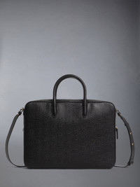 Business bag in grey pebble grain leather with removable adjustable shoulder strap. 2-way brass zip closure, rounded double leather top handle, slip front pocket. Gold foil printed logo and signature striped grosgrain loop tab at front pocket entry. 100% Calf Full Grain Leather Lining: 100% Polyester Made in Italy MAG410A-00198-001