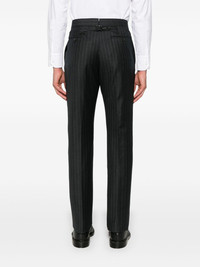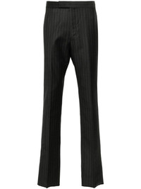 pinstripe wool trousers Highlights - Anthracite grey - Wool - Pinstripe pattern - Signature grosgrain loop tab - Pressed crease - Two side inset pockets - Two rear button-fastening jetted pockets - Adjustable strap to the rear - Concealed front button and hook fastening Imported Composition Outer: Wool 100% Lining: Cupro 100%, Polyester 65%, Cotton 35% SIZE & FIT Model measurements Height 6 ft 2 in(1.87 m) Bust/Chest 37.79 in(96 cm) Hips 37.79 in(96 cm) Waist 30.31 in(77 cm) FittingInformation Designed for a slim fit, offering a comfortable fit that sits just away from the leg The unfinished hems allow for the length to be altered Made from a midweight non-stretch fabric This piece fits true to size – take your usual size