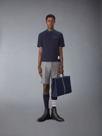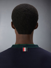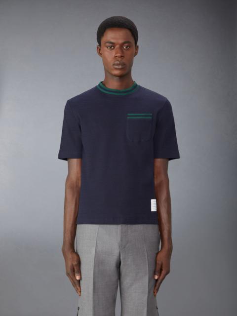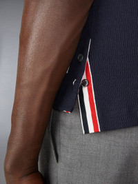 DETAILS & FIT A luxurious tee shirt with romantic pointelle detailing made in fall colors — forest green and navy blue. Pair it with any of our signature trousers. Striped racking stitch trims Chest patch pocket Name tag applique Buttoned side vents with signature striped grosgrain trim Signature striped grosgrain loop tab Model is 6' 1" (185cm), wearing size 1 100% Cotton Made in Italy MJS259A-J0153-415