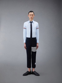 DETAILS & FIT A Thom Browne essential, our POPLIN CLASSIC Armband Shirt exhibits quality craftsmanship and meticulous tailoring. Front button closure Patch chest pocket Signature grosgrain trim at armbands Pleated Buttoned cuffs Name tag applique above Rounded hem Signature striped grosgrain loop tab at back of neck Model is 6' 1" (185cm), wearing size 1 100% Cotton Made in Italy MWL150E-03113-480