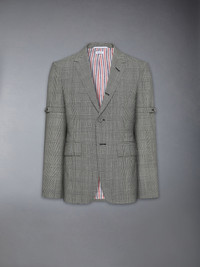 Tailored in fresco wool, this sport coat is woven in a plain weave from high-twist yarns for breathability, shape retention, and a crisp, springy hand. The Prince of Wales check reinforces a sense of classic tailoring, while sharp construction and a clean armband detail define the silhouette with clarity. Pair with the matching Prince of Wales Fresco Wool Backstrap Trouser for a coordinated look. Front button closure Contrast felt undercollar Welt chest pocket Flap hand pockets Three interior pockets Button-fastening self armbands Buttoned cuffs with RWB grosgrain trim Double back vent with internal RWB grosgrain and button connector Tricolor lining Signature striped grosgrain loop tab Fit 1 - Classic fit Model is 6'1" (185cm), wearing size 1 100% Wool Lining: 100% Cupro Made in Italy MJC001O-F1084-980