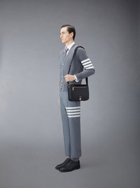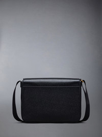 Functionality meets sophistication in our Pebble Grain Reporter Bag. A sharp accessory to any Thom Browne suit, this silhouette is adorned with a brass zip front pocket and a signature gold foil logo. Flap top magnetic closure Leather shoulder strap Brass zip front pocket Slip pocket at front Striped lining with Interior name tag Gold foil printed logo and signature striped grosgrain loop tab at entry Measures W27 x H20 x D6cm 100% Calf Full Grain Leather Lining: 100% Polyester Made in Italy MAG143B-00198-001