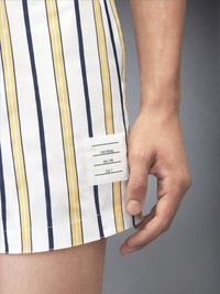 These timeless swim shorts in preppy repp stripes evoke the charm of American country life and the simple joys of summer— swimming and good company. Drawstring waistband Back flap pocket Name tag applique Signature striped grosgrain loop tab Model is 6'1" (185cm), wearing size 0 100% Polyester Lining: 100% Polyester Made in Italy MTT032A-F1167-720