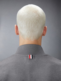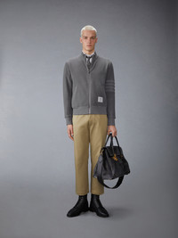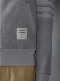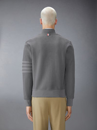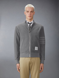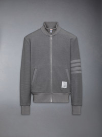 A comfortable, casual light jacket made for everyday wear. Crafted in signature Thom Browne grey, it features our 4-bar detailing and name tag applique, with a zippered closure for easy on/off wear. Front zip closure 4-bar detailing Name tag applique Side slip pockets Signature striped grosgrain loop tab Model is 6'1" (185cm), wearing size 1 100% Cotton Combo 1: 98% Cotton, 2% Elastane Made in Italy MJT519A-J0201-055