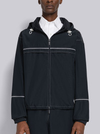 DETAILS & FIT Oversized jacket in navy ripstop with white contrast stitching. 2-way zip front closure, drawstring hood and hem with white stays, gathered cuffs. Name tag applique above hem. Model is 6' 1" (185cm), wearing size 1. 62% Cotton, 38% Nylon Made in Italy MJT343A07651415