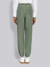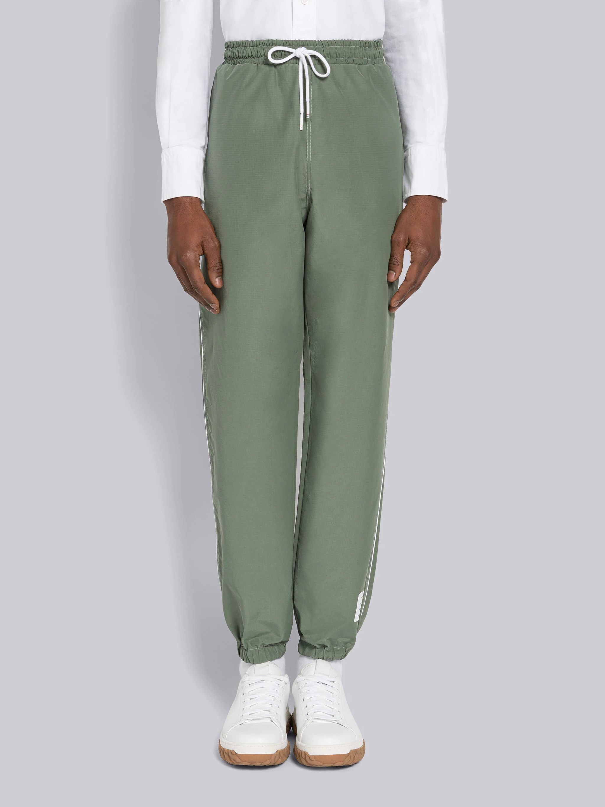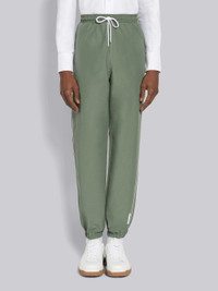 DETAILS & FIT Track pants in dark green ripstop with white contrast stitching. Gathered waistband with white drawstring closure, slip side pockets, single back welt pocket, white side stripe. Name tag above left elasticated cuff. Signature striped grosgrain loop tab at back waist. Model is 6' 1" (185cm), wearing size 1. 62% Cotton, 38% Nylon Made in Italy MJQ150A07651320