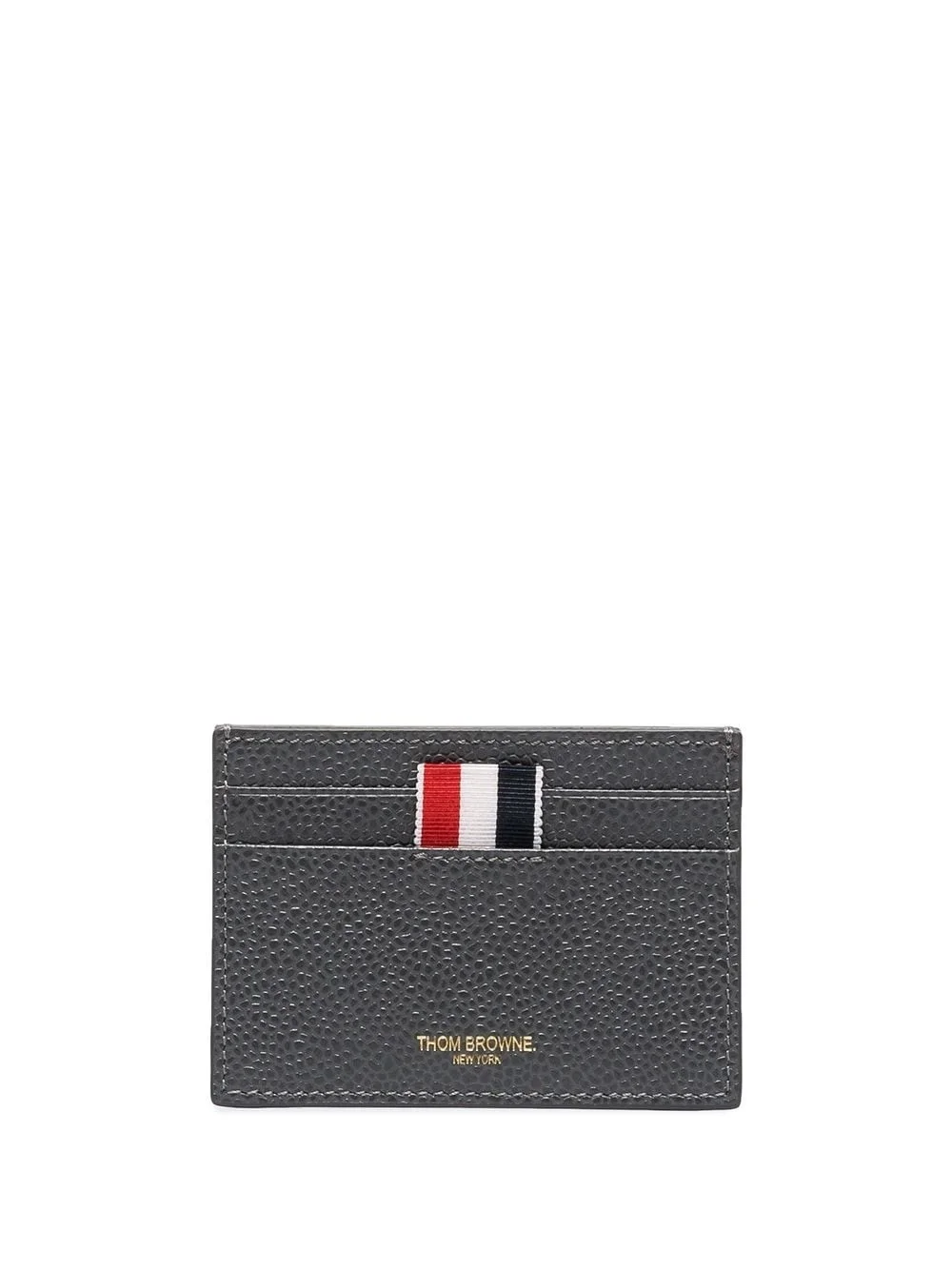 RWB loop tab cardholder Crafted from grained leather in a charcoal grey colourway, Thom Browne's cardholder is simply decorated with the brand's signature grosgrain loop tab and a gold-tone logo stamp to the front. Made in Italy Composition Outer: Calf Leather 100% SIZE & FIT Measurement LENGTH 3.93 in(10 cm) WIDTH 2.75 in(7 cm)