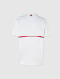 Cotton short sleeve t-shirt. Ribbed crewneck collar. Engineered stripe accent across the chest. Logo patch stitched on the bottom left above the front hem. Nylon striped tag stitched below the back of the collar. - Cotton SKU: MJS221A-J0058-WHT
