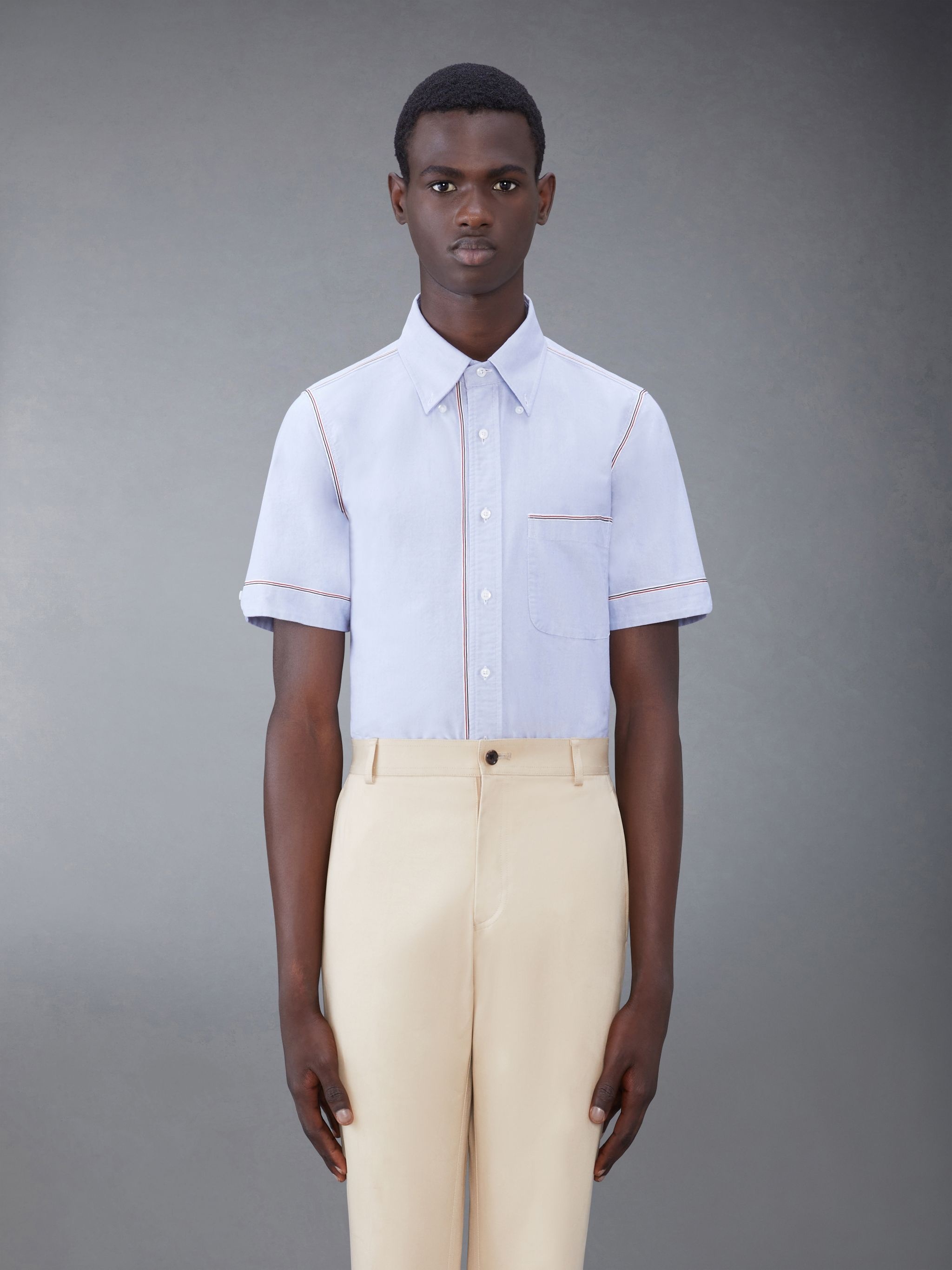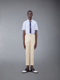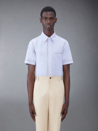 DETAILS & FIT Impeccable craftsmanship, fine cotton fabric, and distinctive Thom Browne emblems make this limited-edition shirt essential to your spring wardrobe. Front button closure Patch chest pocket Name tag applique Seamed back yoke with locker loop Signature striped grosgrain loop tab Model is 6' 1" (185cm), wearing size 1 100% Cotton Made in Italy MWS316A-F0313-480