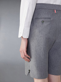 Impeccable craftsmanship, fine fabric, and distinctive Thom Browne emblems make these dress shorts an essential garment for your fall wardrobe. Pair them with any of our oxford shirts or casual tees. Front button closure Name tag applique Signature striped grosgrain trim at front Side slip pockets Button back welt pockets Signature striped grosgrain loop tab Model is 6' 1" (185cm), wearing size 1 100% Cotton Made in Italy MJQ196A-J0139-035