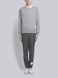 DETAILS & FIT With our signature grosgrain accents throughout and a name tag applique placed above the hem, our Classic Loopback Stripe Pullover showcases the many artful expressions intrinsic to Thom Browne. Crew neckline Name tag applique above hem Center back stripe Buttoned side vents and cuffs with signature striped grosgrain trim Signature striped grosgrain loop tab at back of neck Model is 6' 1" (185 cm), wearing size 0 100% Cotton Made in Italy MJT085A-03377-055