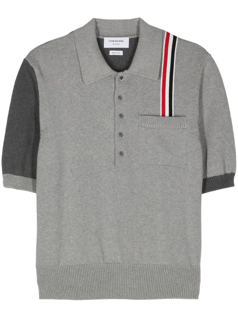 RWB-stripe knitted polo shirt Highlights - Grey - Cotton - Knitted construction - Two-tone design - Polo collar - Rwb stripe - Chest patch pocket - Short sleeves - Ribbed cuffs and hem - Straight hem - Short front button fastening Made in Italy Composition Cotton 100% Washing instructions Machine Wash